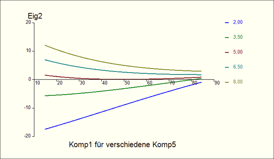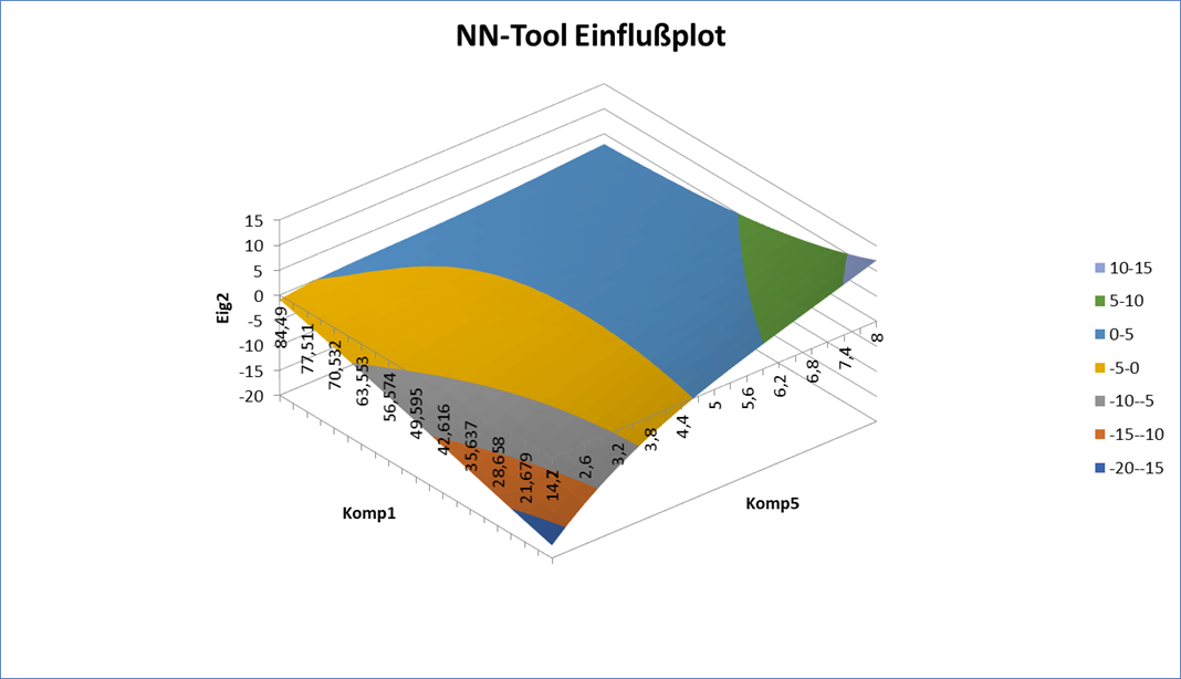 Die beiden wichtigsten Einflüsse auf die Ausgangsgröße "Eig1" sind „Komp2“ und „Komp3“. Eine Erhöhung von „Komp2“ wirkt sich positiv, eine Erhöhung von „Komp3“ negativ auf die Ausgangsgröße „Eig1“ aus.